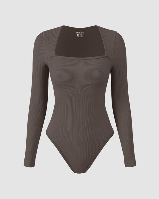 Crew Neck Long Sleeve Ruched Stretch Fitted Bodysuits